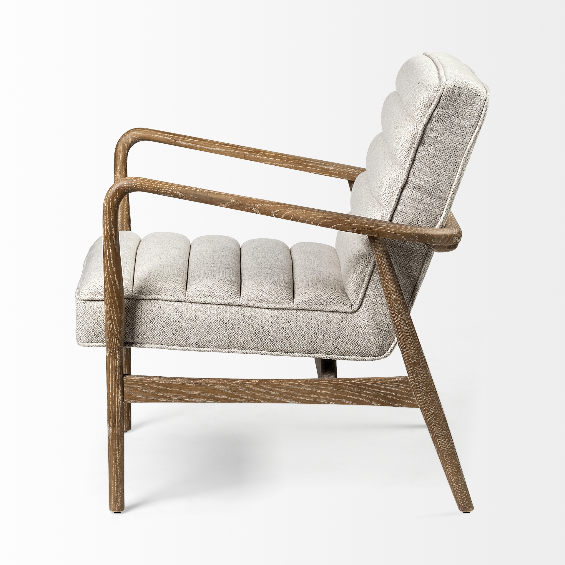 The Ajax I is a ravishing chair that features a cream-toned fabric seat and backrest. The soft, fabric seat flaunts a horizontal stitch and is rested atop a sturdy Beechwood frame with a slight recline to it for the most exceptional seating experience. The medium brown colored, wooden frame not only stabilizes the chair but also adds to its visuals, ensuring that the Ajax I is a head-turner in any space and setting.