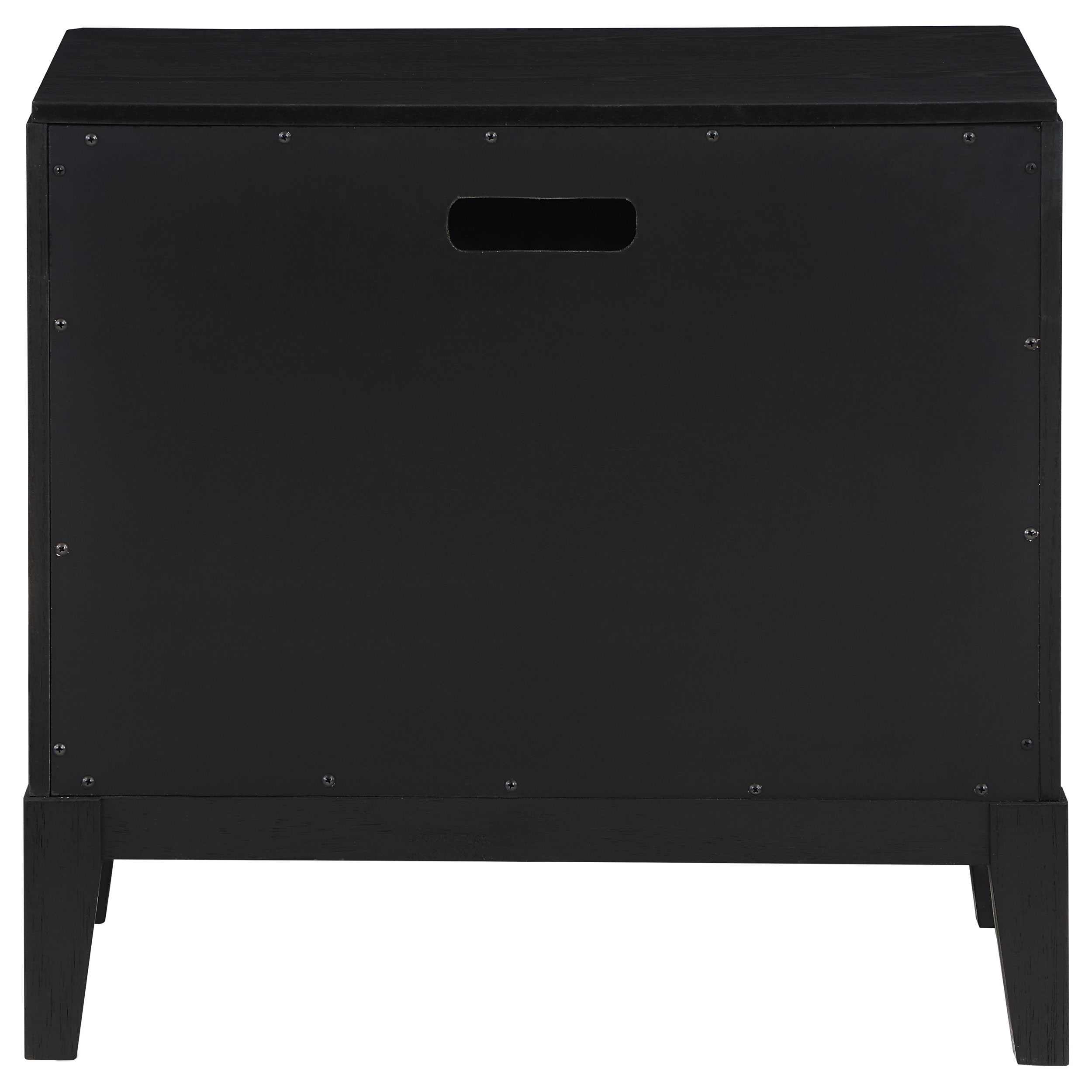 Augment your sophisticated bedroom with the addition of a modern two-drawer nightstand. It boasts a classic stance, with two drawers that offer a place for overnight essentials and personal necessities like books. The top drawer includes felt lining while half-moon pulls add metallic contrast with a soft golden hue. Drawer fronts are fluted, offering impressive texture and dimensionality at your bedside. Its black finish is wire brushed, adding the perfect touch of texture and depth.