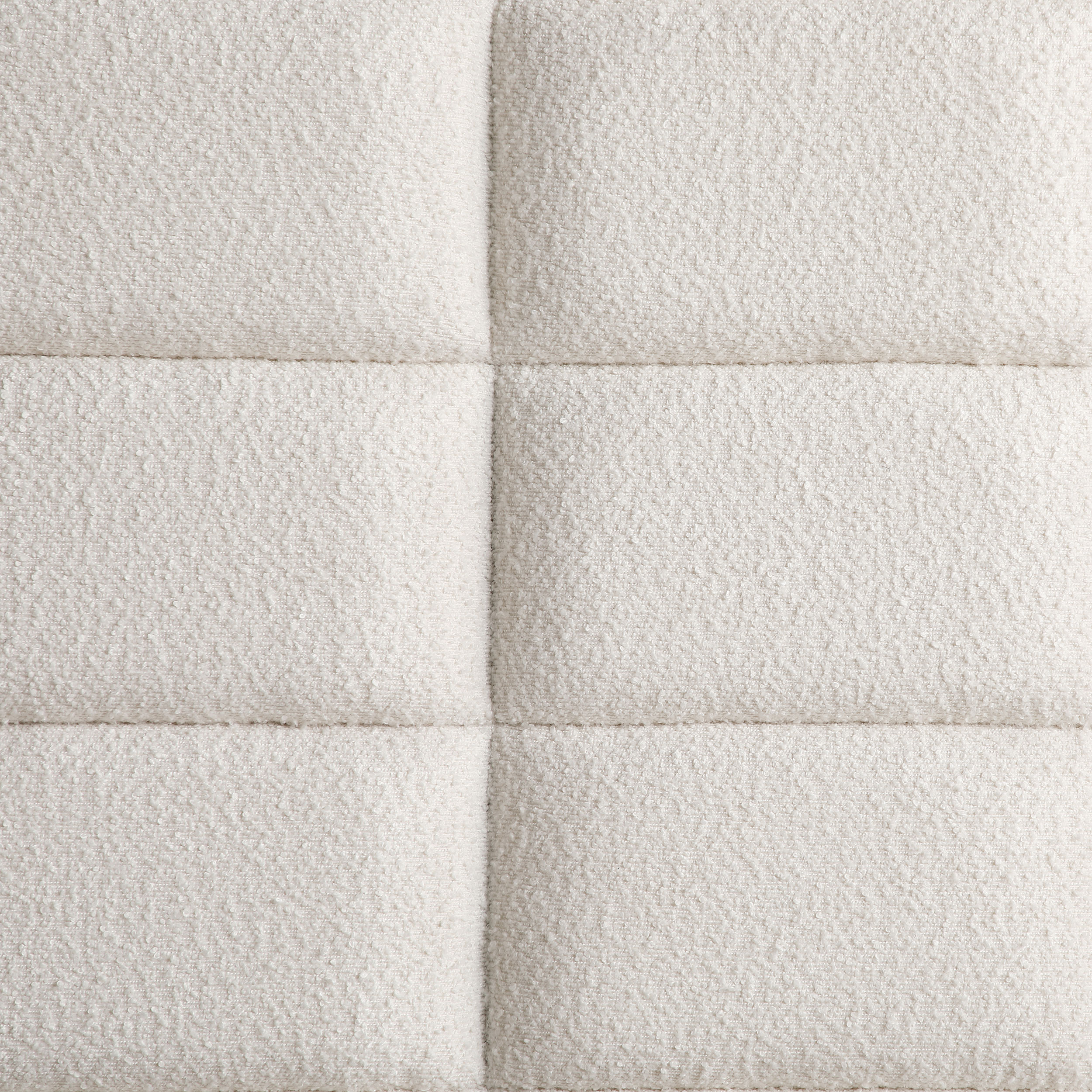 Elevate an inviting master or guest bedroom with the refined flair of this modern upholstered bed. It boasts a wooden frame in a taupe oak finish, creating a neutral palette. Cream upholstery is grid tufting, adding to the architectural appeal of this charming bed. The extra-tall headboard is paired with a low footboard, establishing an open, airy presentation in your bedroom. You’ll love lounging against its foam cushioning and relaxing in comfort.